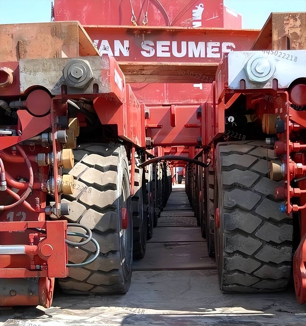 每组轮子独立液压,能适合坑洼途,途面不服它我方调平。转向360度,泊车稳当,动力编制电子掌握,长途操作都行。载重上限5万吨,现实用众正在万吨级,由于超大使命少,但潜力正在那摆着。